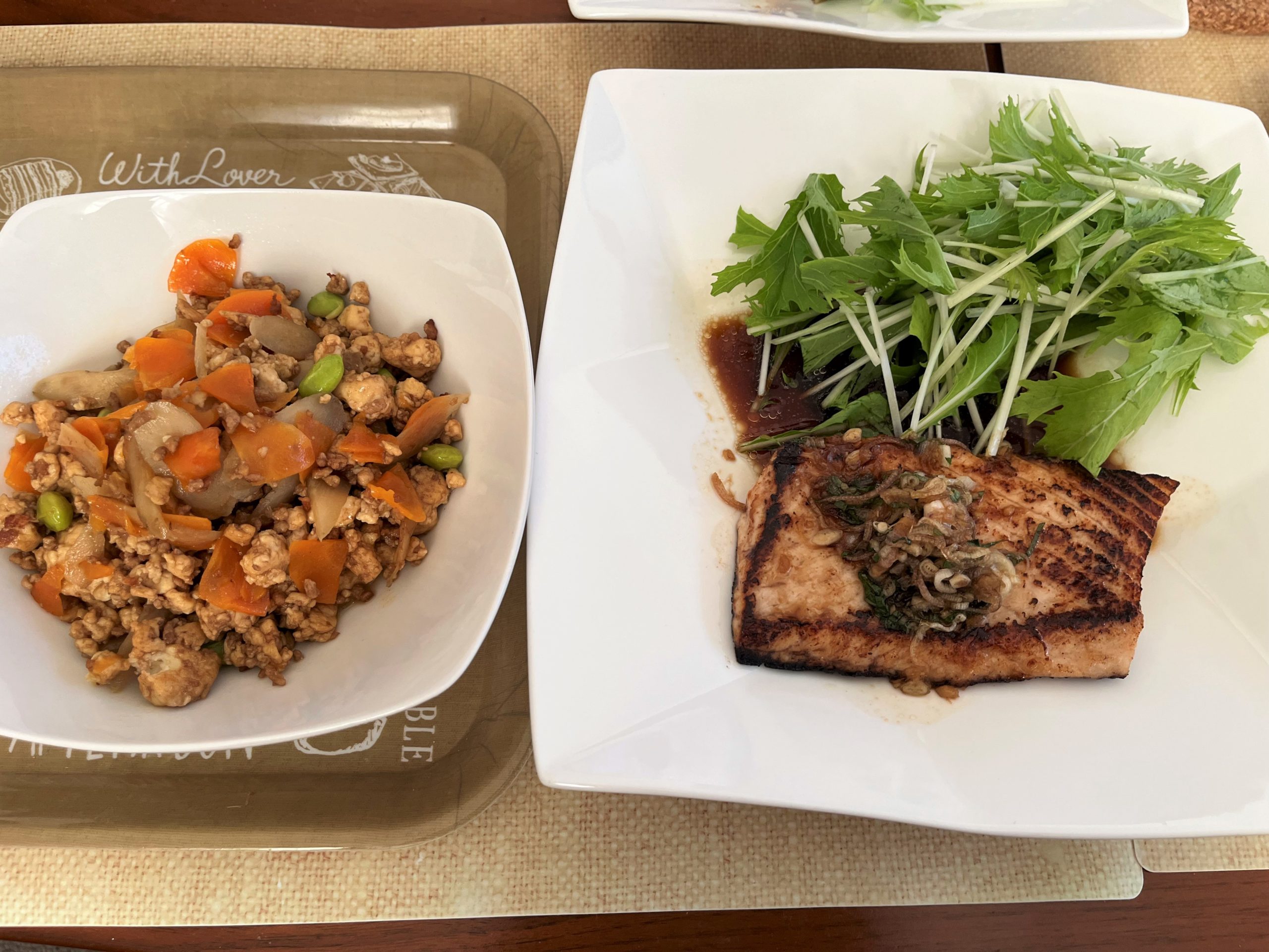 まんだいの薬味じょうゆがけ (しき菜) ヨシケイ X Facebook はてブ Pocket LINE コピー 2022.07.292022.09.11 7/29は 「しき菜」まんだいの薬味じょうゆがけ まんだいの薬味じょうゆがけそぼろけんちん煮 レシピは 材料はこれで全部 結構ある感じ 「まんだい」って何だろう?→「アカマンボウ」だった 結構大きめ(*^-^*) 魚は酒と塩ふって5分おいて、小麦粉付けて焼く・・少し面倒かな? でも臭みが取れて旨味UPするらしいよ できた料理がこれ↓ 思ってた以上に「そぼろけんちん煮」が美味しくて、また作ってみようと思う♪ ごちそうさまでした。