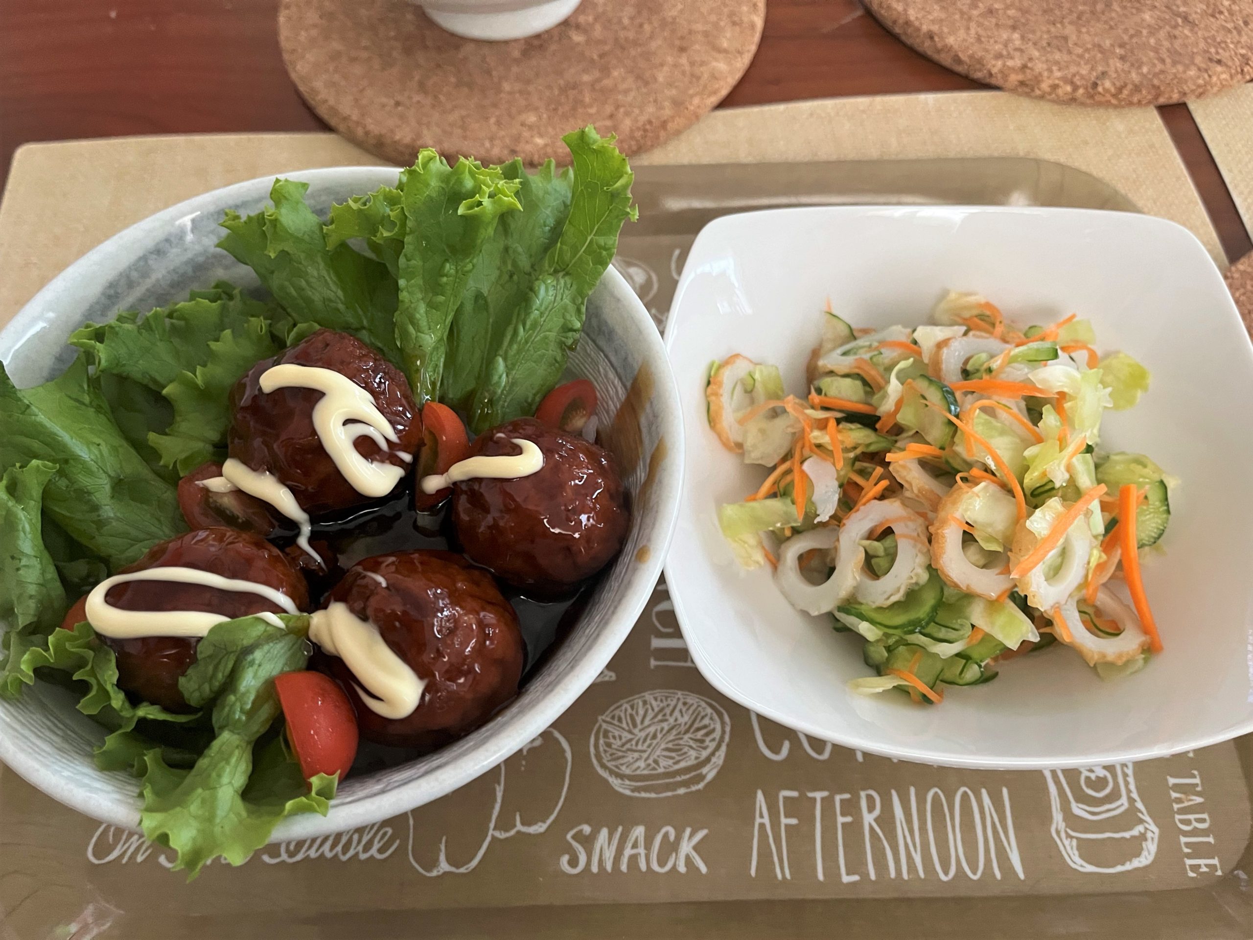 肉団子は袋ごとお湯で温めるだけの簡単メインでした