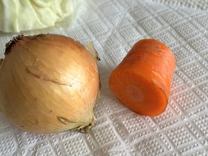 玉ねぎは最近皮つき、人参は切って時間たってる感じ。ごまドレッシングは日本食研だ♪