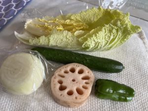白菜『鹿児島』、きゅうり&ピーマン『宮崎』、れんこん『佐賀』、玉ねぎ『北海道』