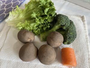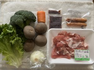 グリーンリーフ&ブロッコリー『福岡』、じゃがいも&玉ねぎ『北海道』、人参『鹿児島』