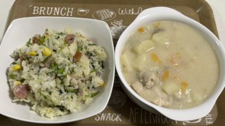 2/24 『プチママ』2品です・チキンときのこのコトコトシチュー・ウインナーとほうれん草のお手軽ピラフすべての材料野菜の産地はほうれん草『佐賀』、人参『長崎』、玉ねぎ&じゃが芋『北海道』『チキンときのこのコトコトシチュー』じゃが芋安&人参は...
