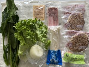 ほうれん草『佐賀』、グリーンリーフ『福岡』、玉ねぎ『北海道』