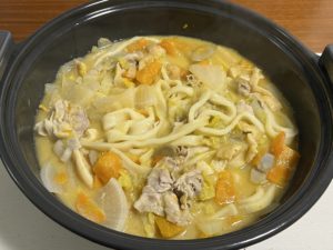 福岡なので鍋と言えば「水炊き」や「ちゃんこ鍋」「モツ鍋」が多く、締めに麺はいれるんだけど、「ほうとう鍋」のように最初に麺をいれるのは麺がのびてしまわないか心配だったけど大丈夫だった!