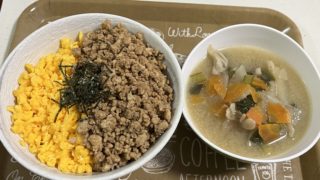 2/10 『プチママ』2品です・鶏そぼろごはん・具だくさん豚汁すべての材料は野菜の産地は青菜『福岡』、大根&人参『長崎』『鶏そぼろごはん』鶏そぼろ⇒ひき肉、砂糖&酒&醤油を炒め水気がなくなったら完成。炒り卵⇒溶き卵に砂糖&塩を混ぜ、フライパ...