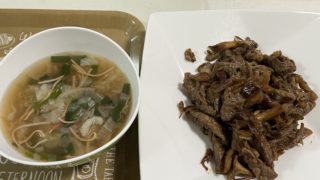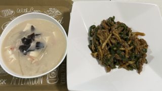 5/30は『定番』2品です・牛肉と舞茸のオイスターソース炒め・かにかまと野菜のスープすべての材料は野菜の産地はニラ&玉ねぎ『佐賀』、大根『長崎』、キャベツ『福岡』『牛肉と舞茸のオイスターソース炒め』材料炒めてタレを絡めて完成。『スープ』ニラ...