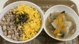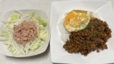 もやしも電子レンジ加熱し水気をきって、ちぎったしその葉と塩&ごま油で味付け。