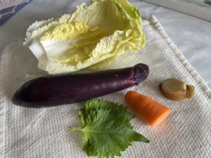 白菜『福岡』、なす『熊本』、人参『長崎』、しその葉『大分』、生姜『高知』