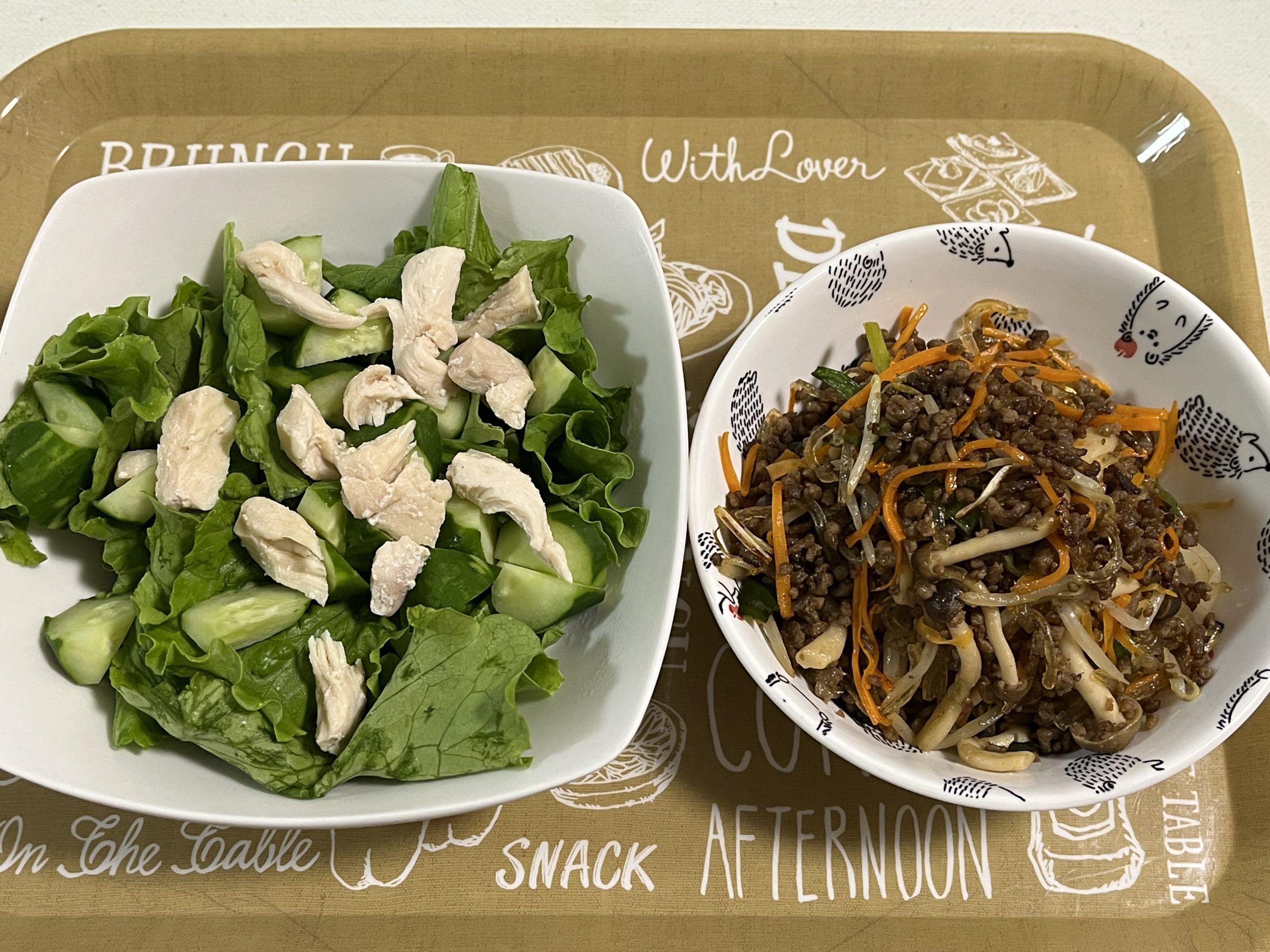 牛ひき肉とつるつる春雨のチャプチェ(プチママ) ヨシケイ X Facebook はてブ Pocket LINE コピー 2025.06.24 6/24も『プチママ』2品です ・牛ひき肉とつるつる春雨のチャプチェ ・蒸し鶏のサラダ 牛ひき肉とつるつる春雨のチャプチェ蒸し鶏のサラダ すべての材料は グリーンリーフ『長野』、にら『高知』、人参『長崎』、きゅうり『佐賀』 春雨のチャプチェは簡単だったし、サラダの冷凍鶏肉は少し面倒かな?と思ったけど簡単だった。 ごちそうさまでした♪