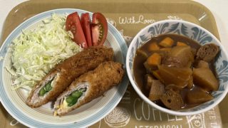 ヨシケイ 2種類のチーズとアスパラの肉巻きフライ(プチママ) 6/25もプチママ 2品です・2種類のチーズとアスパラの肉巻きフライ・大根とがんものみそ煮材料は↓野菜の産地は・・大根『北海道』、人参『長崎』、キャベツ『大分』、トマト&玉ねぎ『佐賀』です煮物は大根、人参をレンチンしてから他の材料と煮込むだ... 2025.06.25 ヨシケイ