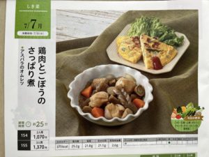 鶏肉とごぼうのさっぱり煮(しき菜) ヨシケイ X Facebook はてブ Pocket LINE コピー 2025.07.07 7/7の週は『しき菜』 ヨシケイには「毎日5種類以上の野菜が摂れるメニュー」が『しき菜』らしいです。 ・鶏肉とごぼうのさっぱり煮 ・アスパラのオムレツ 鶏肉とごぼうのさっぱり煮アスパラのオムレツ レシピは↓ すべての材料は 野菜たち 冷凍の鶏肉は少し色が・・ 鶏肉~はお酢が入っているからさっぱりして夏の煮物が苦手な人にもおすすめ。 アスパラのオムレツもおいしかったよ ごちそうさまでした♪