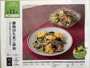 豚肉のたまご炒め(しき菜) ヨシケイ X Facebook はてブ Pocket LINE コピー 2025.07.11 7/11まで『しき菜』2品です。 ・豚肉のたまご炒め ・かにかまとレタスの昆布あえ 豚肉のたまご炒めかにかまとレタスの昆布あえ レシピは 材料は↓ 夏らしい感じですね ヨシケイ福岡では、福岡らしい『糸島産』の豚肉の時があって嬉しくなりますね その他 豚肉は炒めるだけで簡単だし、昆布あえはオクラが電子レンジで加熱だったためこちらも簡単で美味しかったよ ごちそうさまでした♪