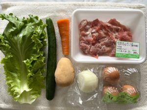 今回の野菜&お肉(ヨシケイ福岡だから九州産って福岡産かな?)