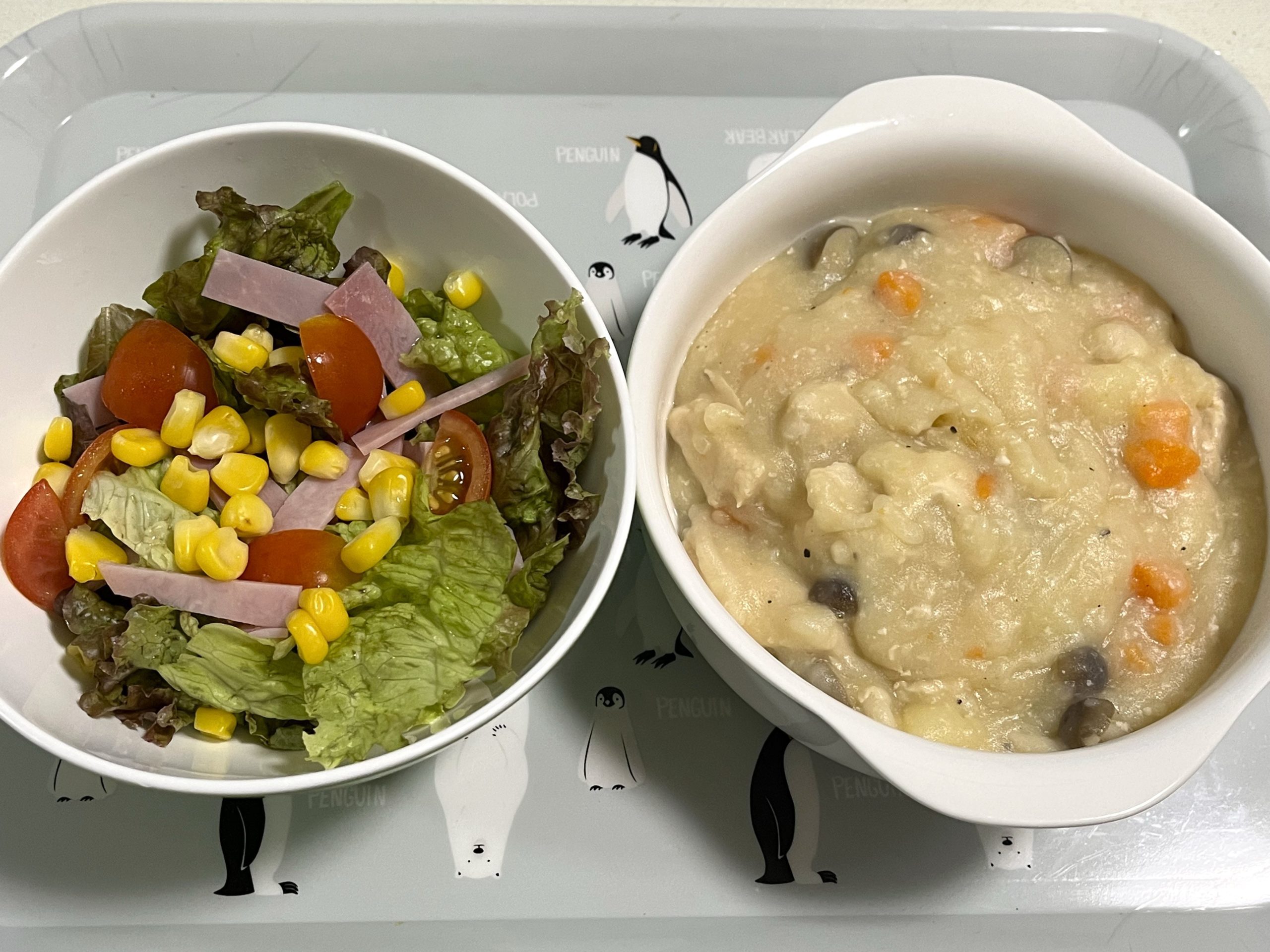 チキンときのこのコトコトシチュー(プチママ) ヨシケイ X Facebook はてブ Pocket LINE コピー 2025.09.162025.12.25 9/16もプチママ 2品です ・チキンときのこのコトコトシチュー ・ハムとミニトマトのサラダ チキンときのこのコトコトシチューハムとミニトマトのサラダ すべての材料↓ 詳しく・・ 野菜などは・・ 肉は少し大きめ サラダは切って盛る程度。シチューも切って全部炒めて煮込んでOK! とっても簡単でした 冬しかシチューって食べないけどこの時期のシチューもいいね ごちそうさまでした♪
