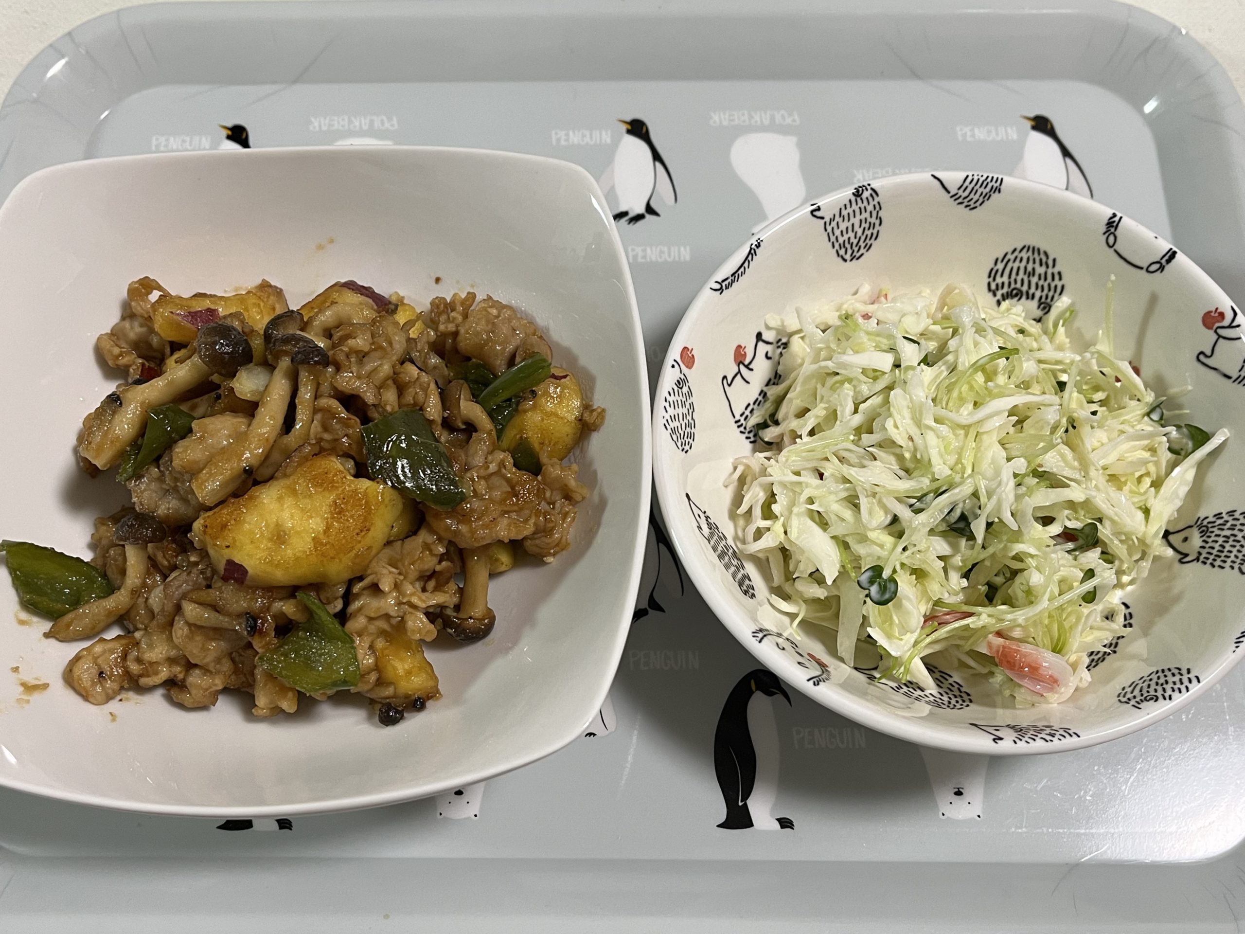 豚肉とさつま芋の焼き南蛮(カジュアルディッシュ) ヨシケイ X Facebook はてブ Pocket LINE コピー 2025.10.01 10/1も『カジュアルディッシュ』2品です ・豚肉とさつま芋の焼き南蛮 ・コールスロー 豚肉とさつま芋の焼き南蛮コールスロー レシピは すべての材料は 野菜の産地は・・ キャベツ『群馬』、さつまいも『熊本』、ピーマン『宮崎』、玉ねぎ『北海道』 コールスローも簡単。焼き南蛮も焼いてタレ加えるって感じ(すごく簡単な説明) さつまいも食べると秋っぽくていいね ごちそうさまでした♪
