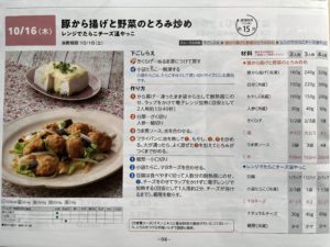 「豚から揚げと野菜のとろみ炒め』は豚から揚げが冷凍でレンジ加熱だったので簡単でした。