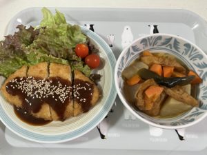 レンジで簡単!名古屋風みそチキンカツ(カットミール) ヨシケイ X Facebook はてブ Pocket LINE コピー 2025.10.23 10/23も『カットミール』2品です ・レンジで簡単!名古屋風みそチキンカツ ・おでん風煮 レンジで簡単!名古屋風みそチキンカツおでん風煮 すべての材料は 産地は サニーレタス『大分』、ミニトマト『長崎』 カットされた大根&人参は『北海道』 チキンカツは電子レンジで4分50秒加熱するだけ。 おでん風煮も大根と人参がカット済みなので簡単だった! ボリュームもあって美味しかった ごちそうさまでした♪