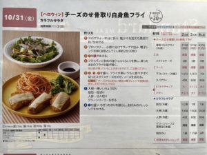 チーズのせ骨取り白身フライ(スマイリーミール) ヨシケイ X Facebook はてブ Pocket LINE コピー 2025.10.31 10/31ハロウィンのヨシケイは・・スマイリーミール 2品です ・チーズのせ骨取り白身フライ ・カラフルサラダ チーズのせ骨取り白身フライカラフルサラダ すべての材料は 今日のブロッコリーは冷凍に変更となりました 野菜の産地は グリーンリーフ&大根『熊本』、きゅうり『宮崎』、人参『北海道』 冷凍ブロッコリーはしっかり洗って使わないと黒いゴミが沢山出てくるので注意。 電子レンジで加熱すればいいから楽だけどね。 カラフルなハロウィンらしくなった日でした。 ごちそうさまでした♪