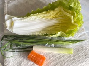 白菜『長崎』、人参『北海道』、長ネギ『大分』、にら『高知』