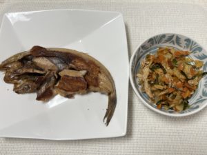 魚はフライパンで焼いたらボロボロになっちゃった・・。