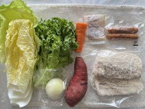 白菜&さつまいも『鹿児島』、グリーンリーフ『福岡』、人参『熊本』、玉ねぎ『佐賀』