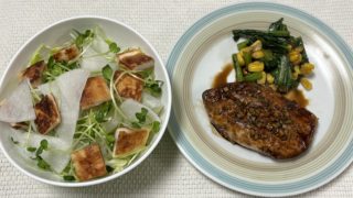 ヨシケイ めかじきのガーリックソテー(カジュアルディッシュ) 12/19 『カジュアルディッシュ』2品です・めかじきのガーリックソテー・焼はんぺんのサラダレシピはすべての材料は野菜の産地は青菜『福岡』、レタス&大根『熊本』、にんにく『青森』『めかじきのガーリックソテー』魚の水気を拭き、酒と塩を振ってお... 2025.12.19 ヨシケイ