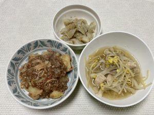ごぼうのごま酢あえは味が物足りなかったけど、残り2品は美味しくできた。